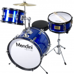 Mendini By Cecilio 16 Inch 3-Piece Kids/Junior Drum Set With Adjustable Throne, Cymbal, Pedal & Drumsticks, Metallic Blue, MJDS-3-BL